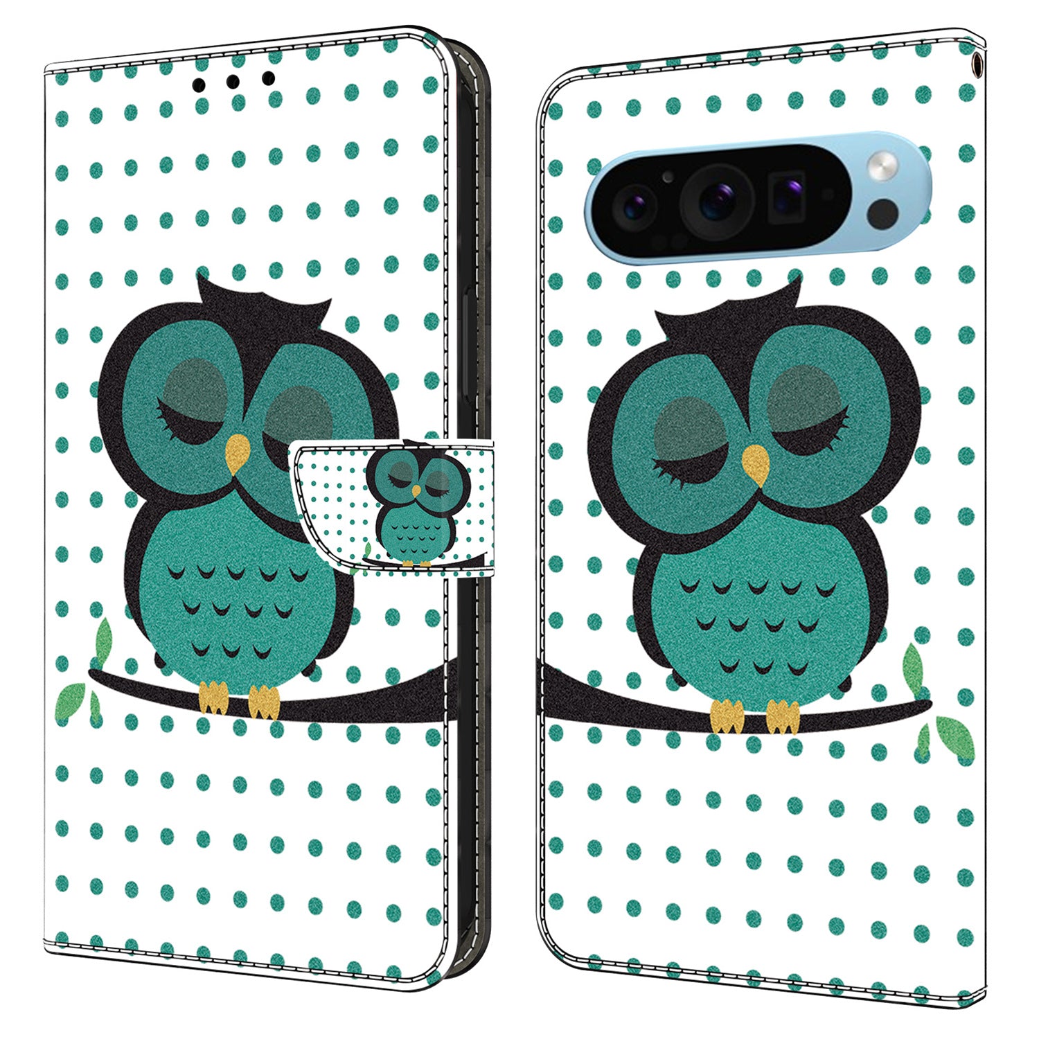 For Google Pixel 9 Case PU Leather 3D Pattern Wallet Phone Cover with Magnetic Clasp - Sleeping Owl