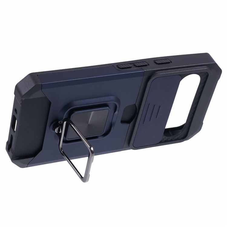 For Google Pixel 9 / Pixel 9 Pro Case Card Holder PC+TPU Kickstand Phone Cover with Lens Protection - Navy Blue