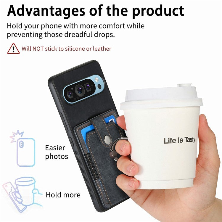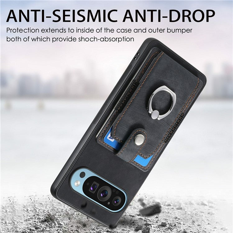 For Google Pixel 9 / Pixel 9 Pro Case Kickstand Leather+TPU Non-Slip Protective Cover Card Slots - Black