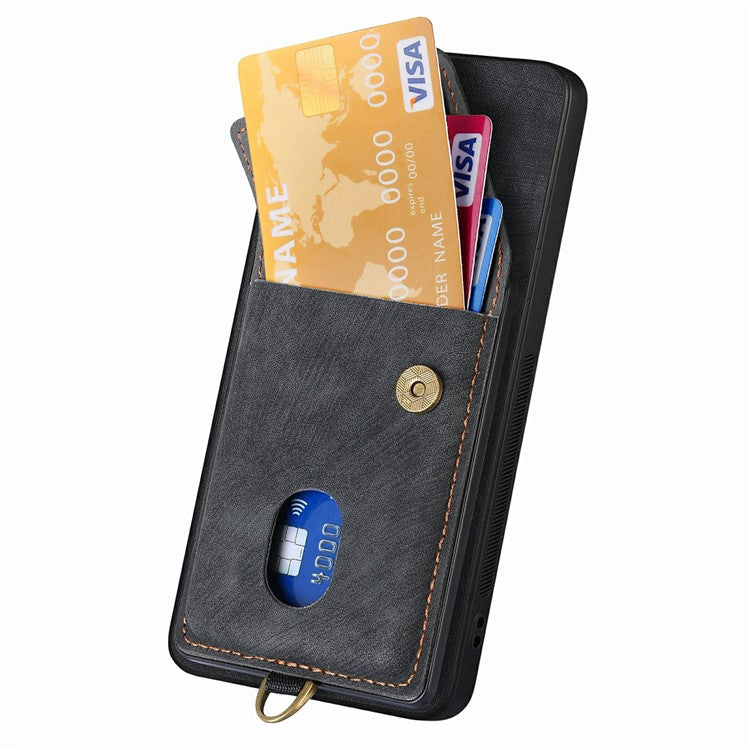 For Google Pixel 9 / Pixel 9 Pro Case with Card Slot Kickstand Leather TPU Phone Cover - Black