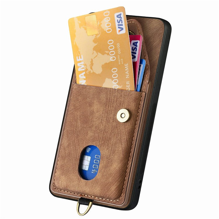For Google Pixel 9 / Pixel 9 Pro Case with Card Slot Kickstand Leather TPU Phone Cover - Brown