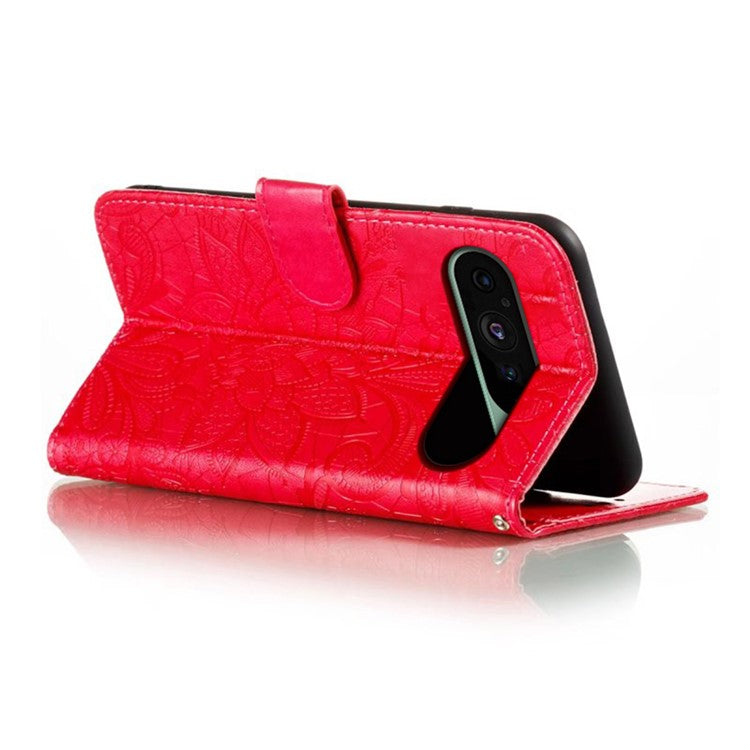 For Google Pixel 9 Pro / 9 Case Lace Flowers PU Leather Flip Wallet Phone Cover - Red