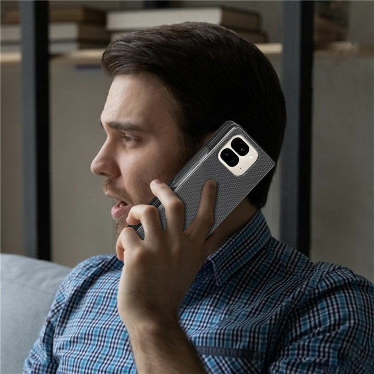 For Google Pixel 9 Pro Fold 5G Case Carbon Fiber Texture PU Leather Coated PC Folding Phone Cover - Black