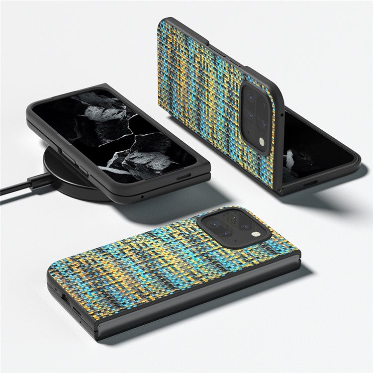 For Google Pixel 9 Pro Fold 5G Case Leather+PC Phone Cover Plaid Texture - Gold