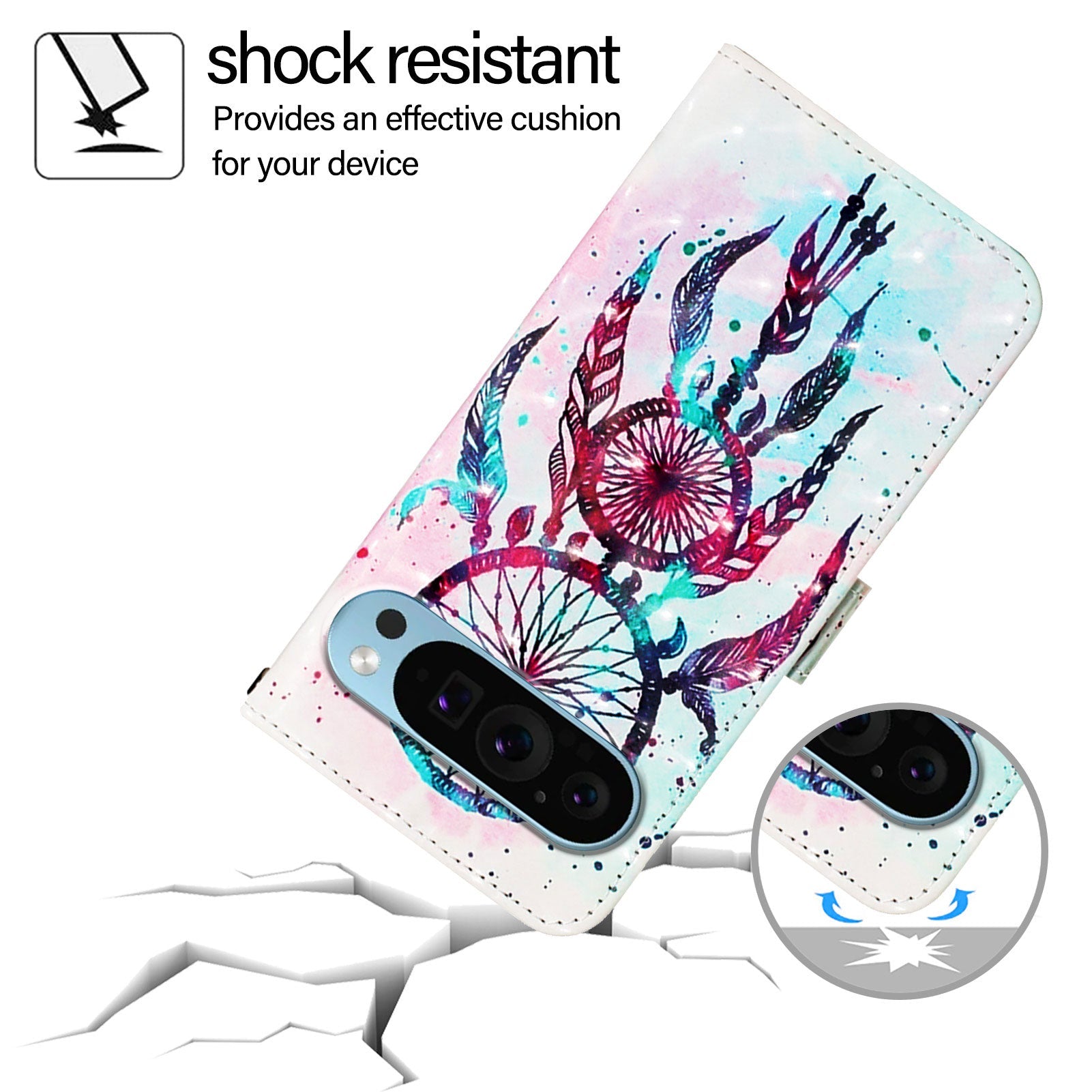 For Google Pixel 9 Pro / Google Pixel 9 Leather Case YB Pattern Printing Leather Series-2 Pattern Printing Wallet Stand Cover - Colorful Wind Chime