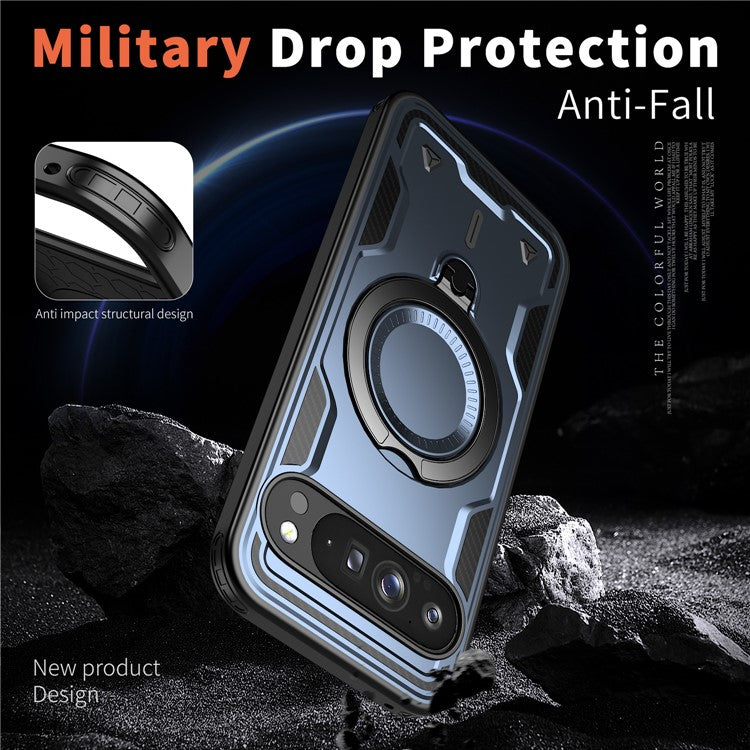 For Google Pixel 9 Pro / Pixel 9 Case Compatible with MagSafe Military Protection PC+TPU Kickstand Phone Cover - Blue