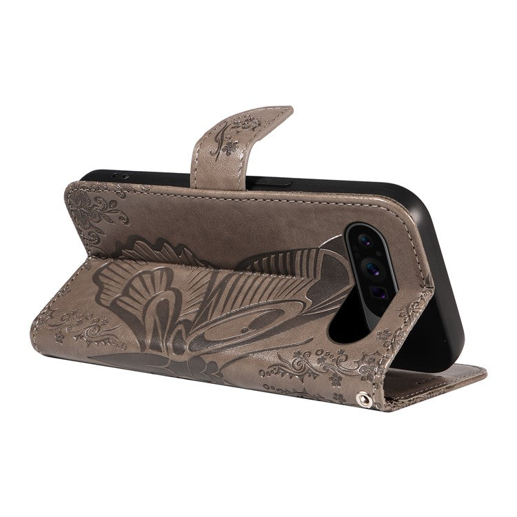 For Google Pixel 9 Pro / Pixel 9 Case Flip Stand PU Leather Phone Cover Swallowtail Butterfly - Grey