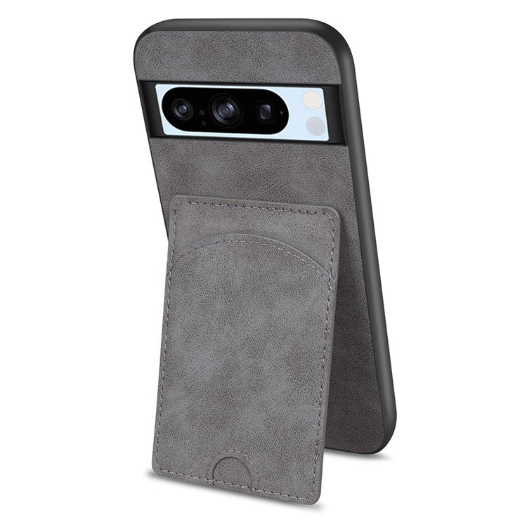 For Google Pixel 9 Pro / Pixel 9 Case Kickstand Leather Coated TPU Phone Cover with Card Slot - Grey