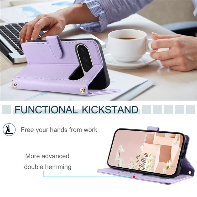 For Google Pixel 9 Pro / Pixel 9 Wallet Case Rhombus Grid PU Leather Phone Cover - Purple