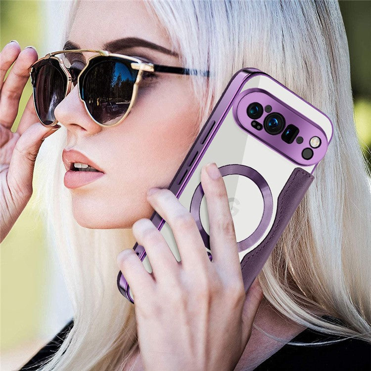 For Google Pixel 9 Pro XL Case Compatible with MagSafe Rhombus PU Leather Phone Cover - Purple