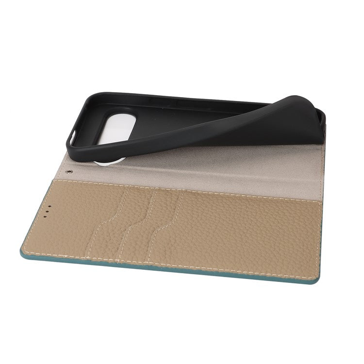 For Google Pixel 9 Pro XL Case Litchi Texture Genuine Cow Leather Phone Cover - Baby Blue