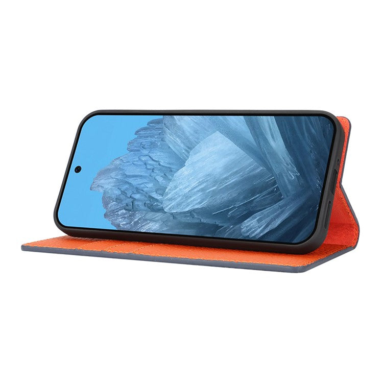 For Google Pixel 9 Pro XL Case Litchi Texture Genuine Cow Leather Phone Cover - Dark Blue