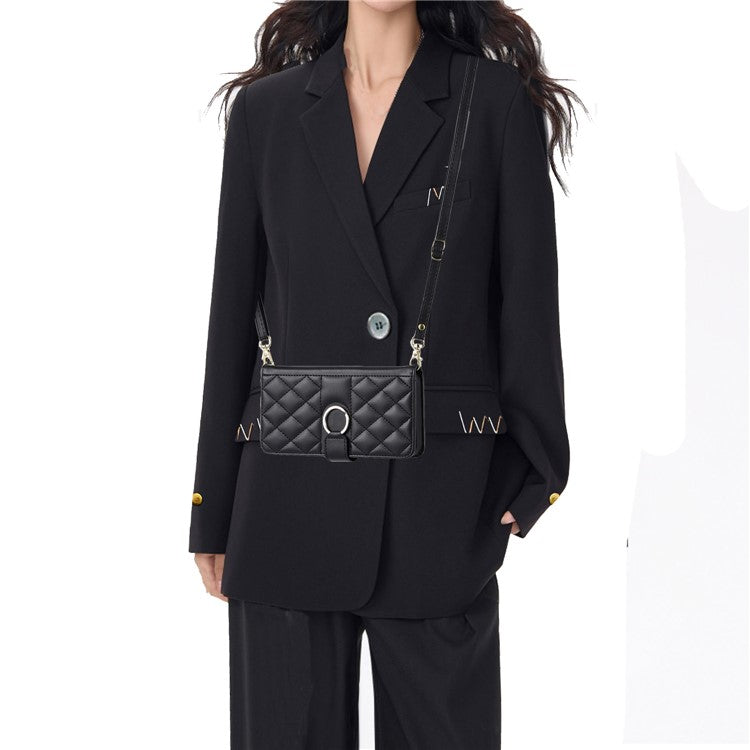 For Google Pixel 9 Pro XL Crossbody Leather Case Ring Buckle Wallet Stand Rhombus Mobile Cover - Black