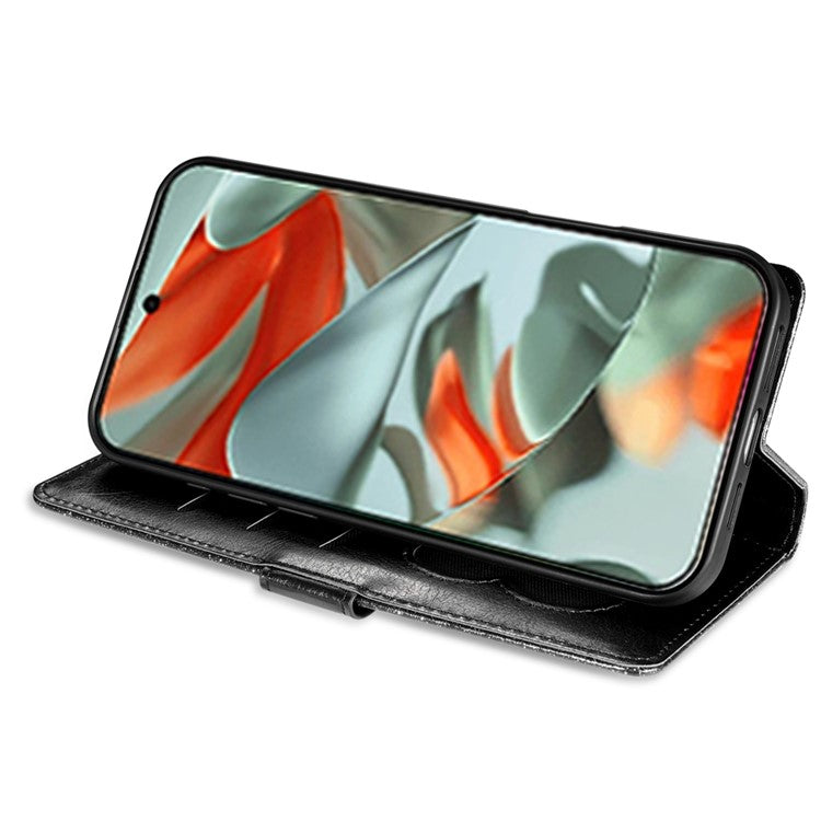 For Google Pixel 9 Pro XL Stand Case Glitter Phone Leather Cover Zipper Pocket - Black