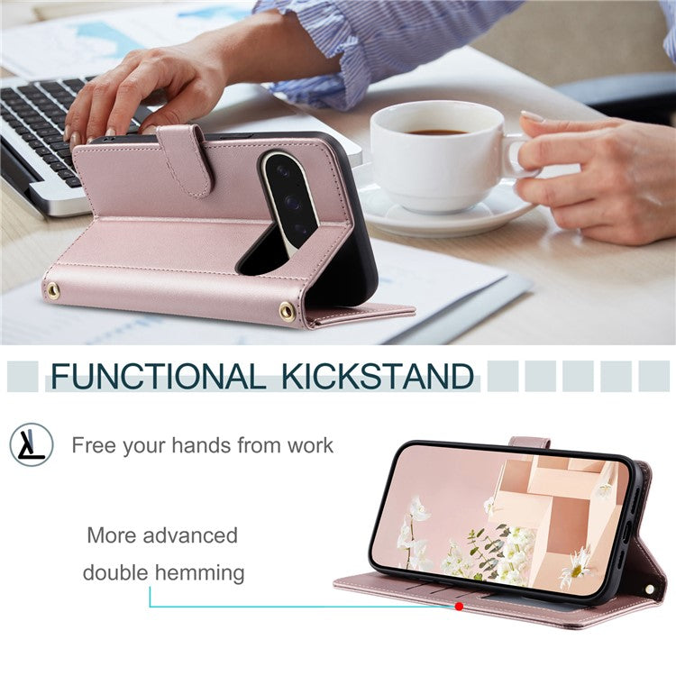 For Google Pixel 9 Pro XL Wallet Case Rhombus Grid PU Leather Phone Cover - Rose Gold