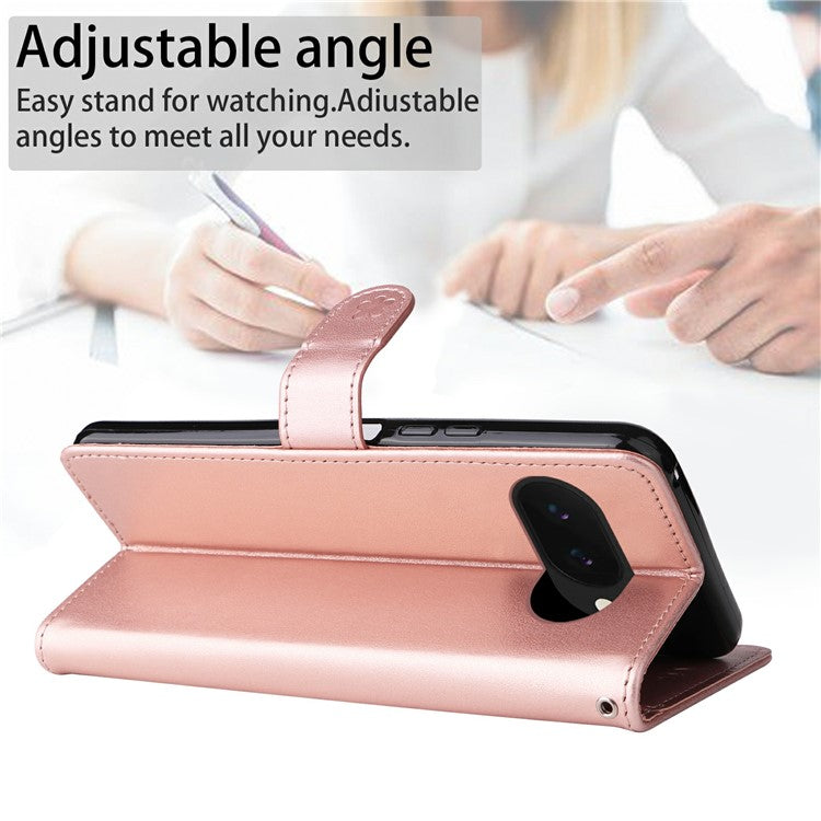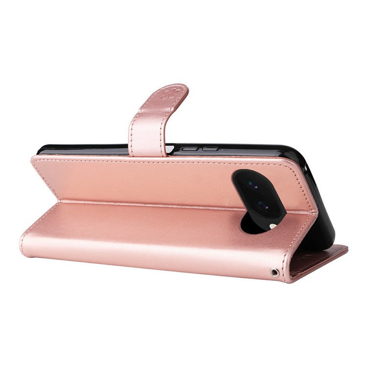 For Google Pixel 9a Case Cat Bee Pattern Leather Phone Cover - Rose Gold