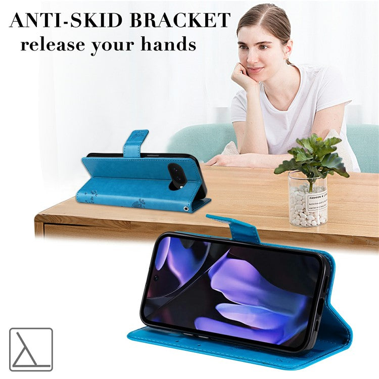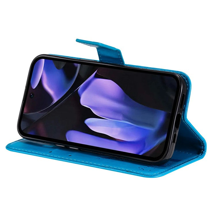 For Google Pixel 9a Case Cat Tree Pattern Flip Leather Phone Cover - Blue