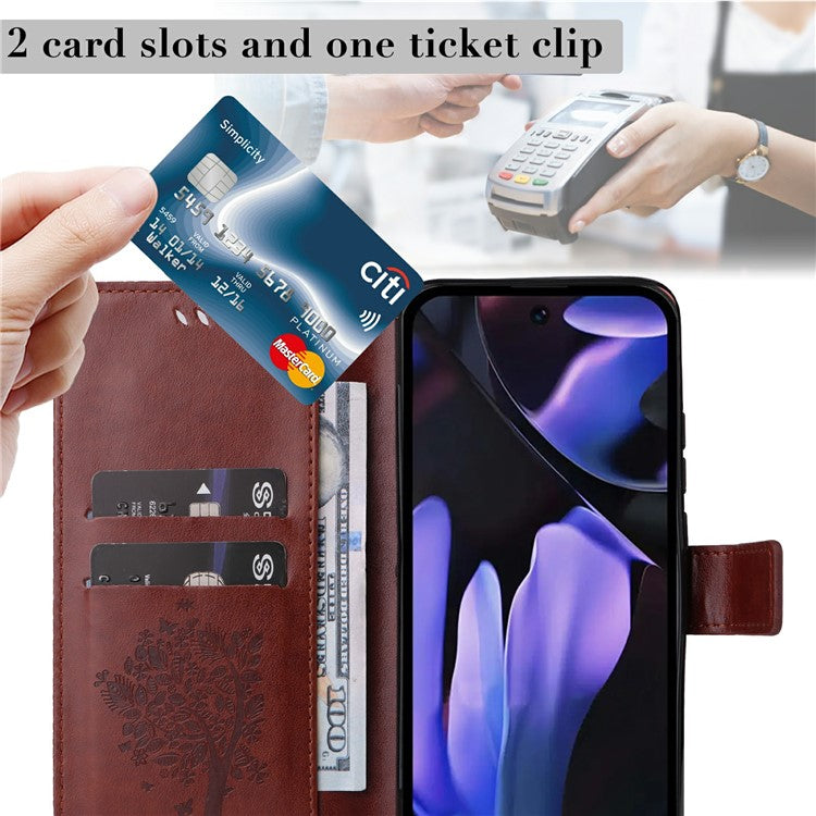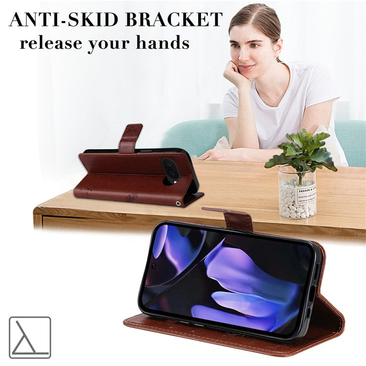 For Google Pixel 9a Case Cat Tree Pattern Flip Leather Phone Cover - Coffee