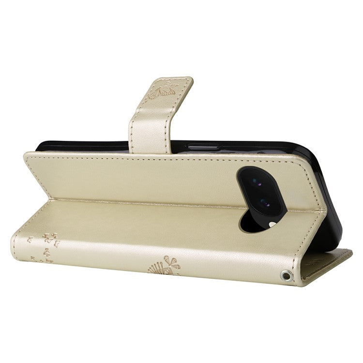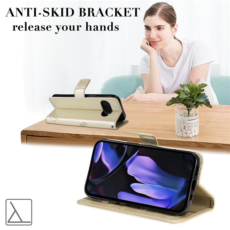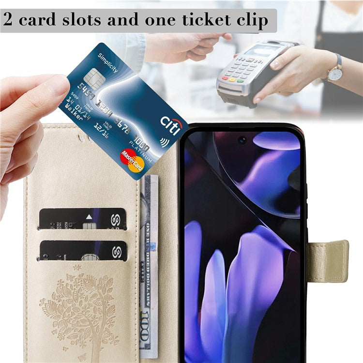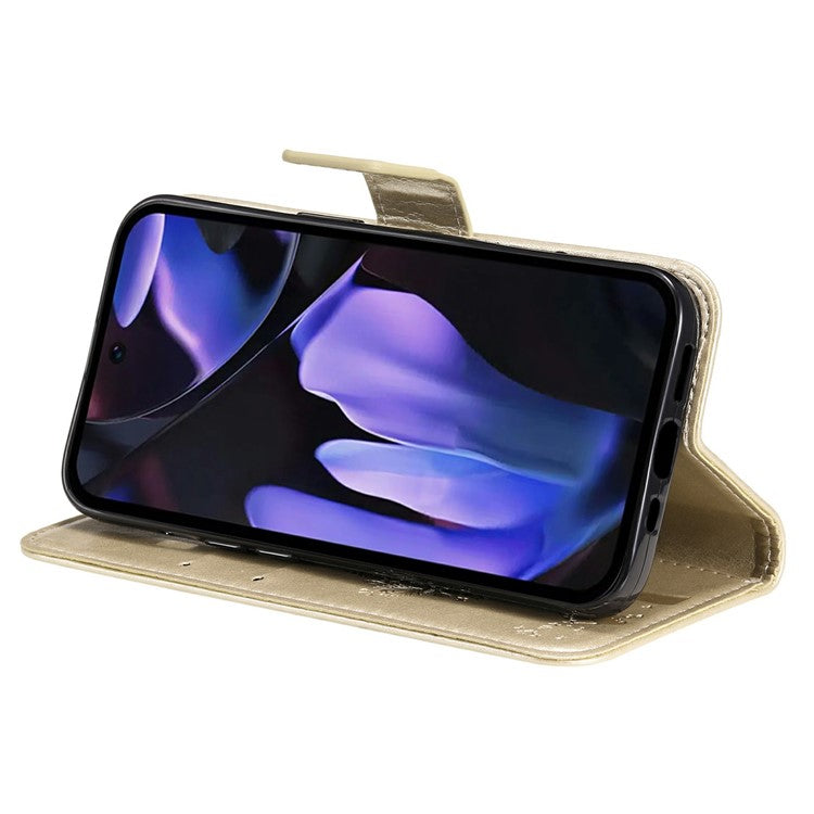 For Google Pixel 9a Case Cat Tree Pattern Flip Leather Phone Cover - Gold