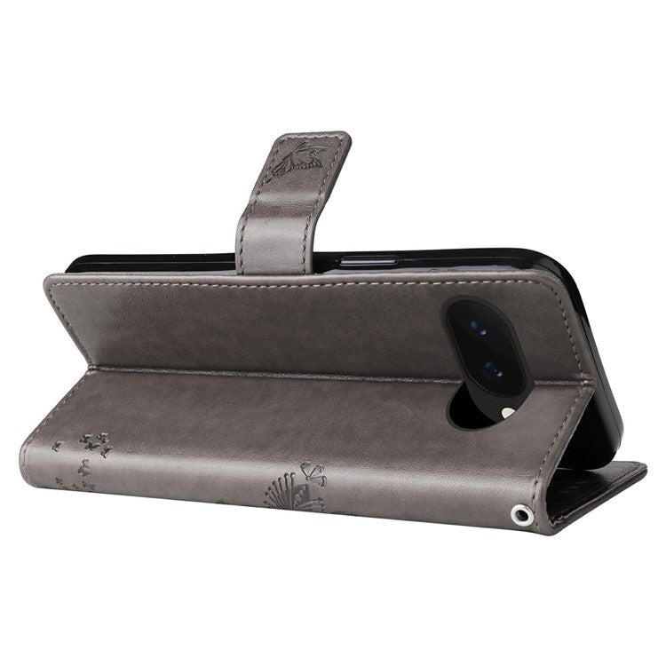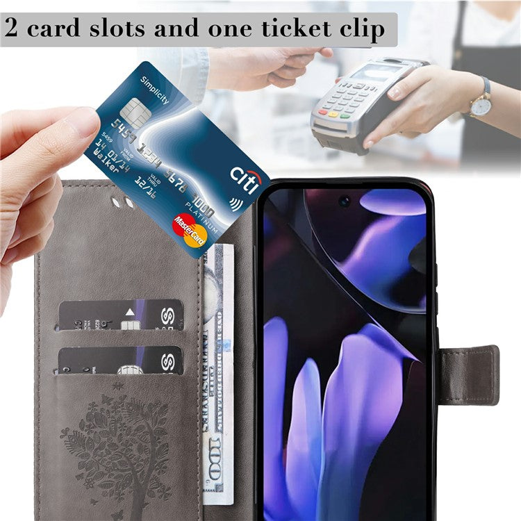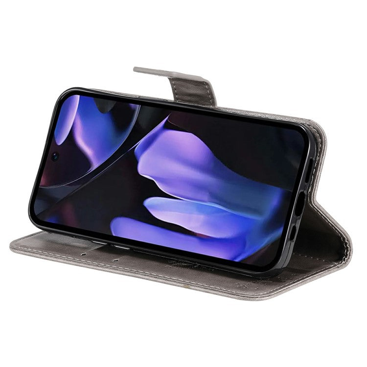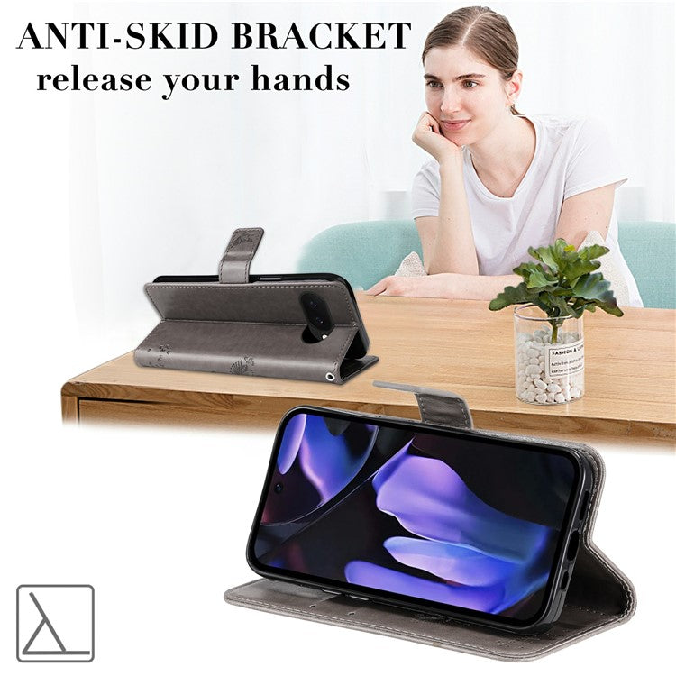 For Google Pixel 9a Case Cat Tree Pattern Flip Leather Phone Cover - Grey