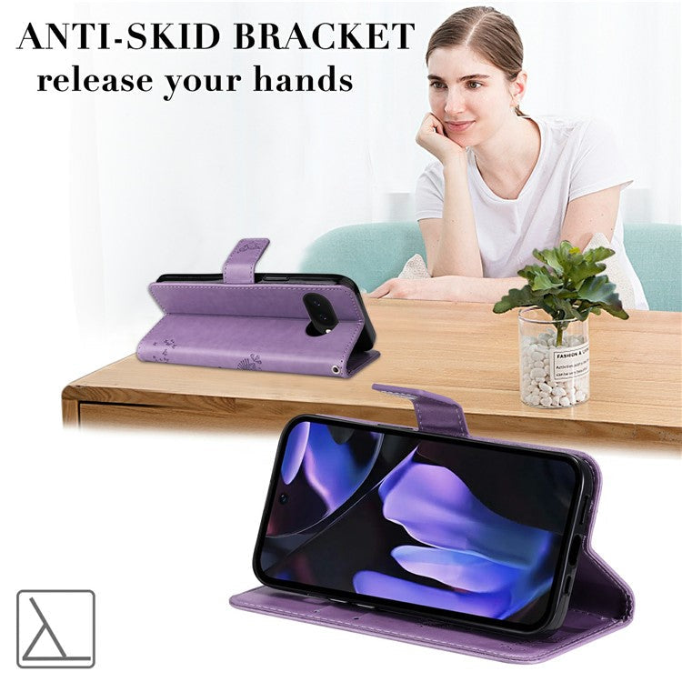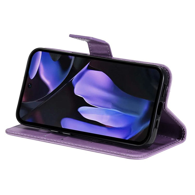 For Google Pixel 9a Case Cat Tree Pattern Flip Leather Phone Cover - Light Purple