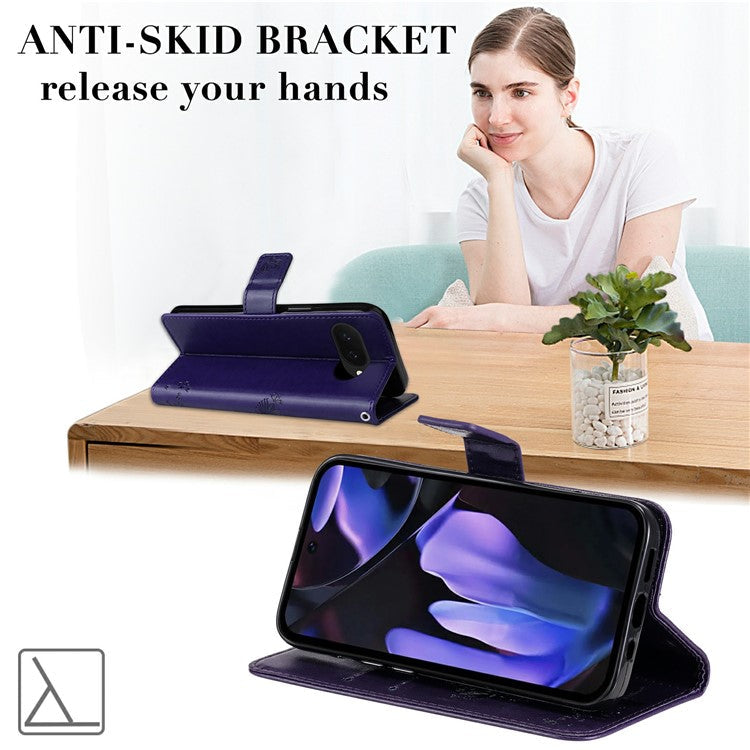 For Google Pixel 9a Case Cat Tree Pattern Flip Leather Phone Cover - Purple