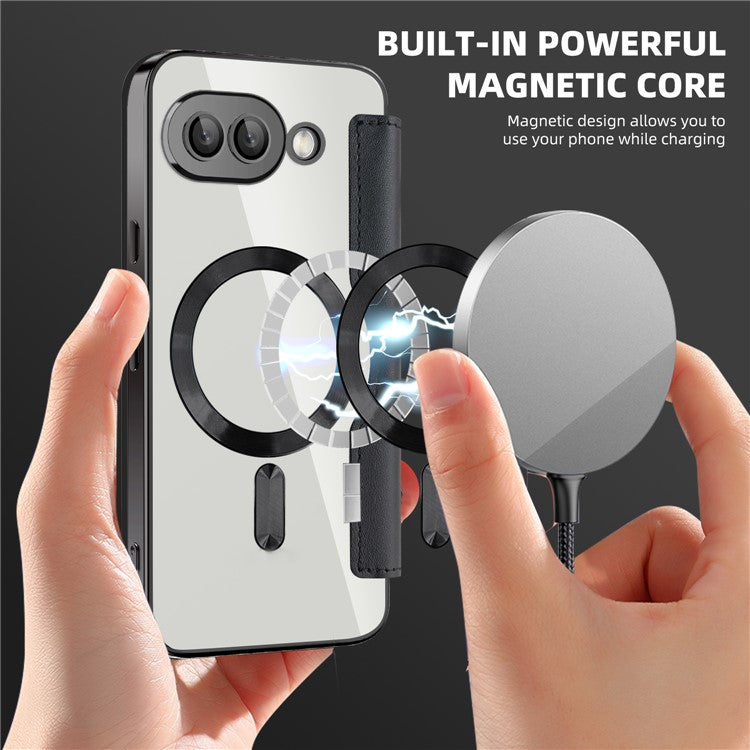 For Google Pixel 9a Case Compatible with MagSafe Rhombus PU Leather Phone Cover - Black