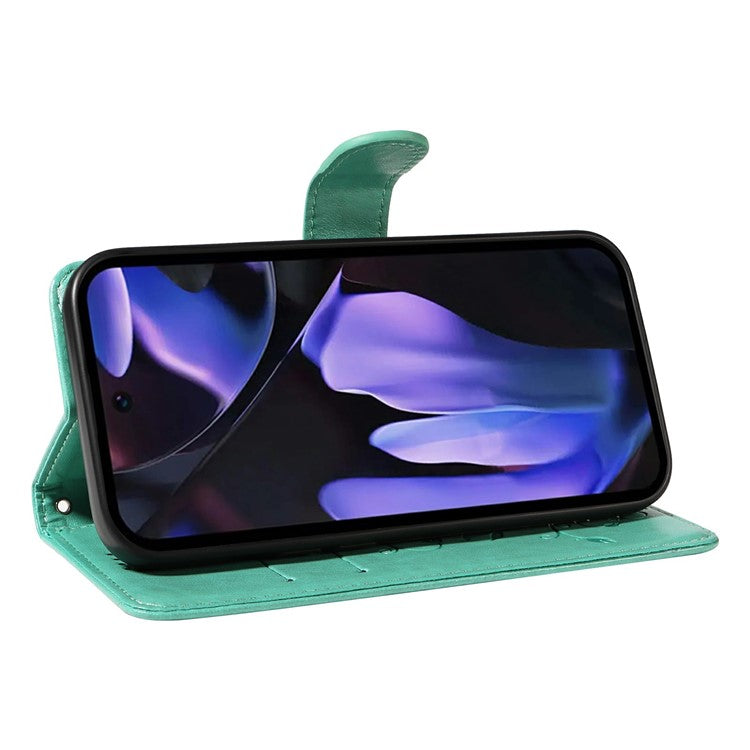 For Google Pixel 9a Case Flower Pattern PU Leather Wallet Phone Cover - Green