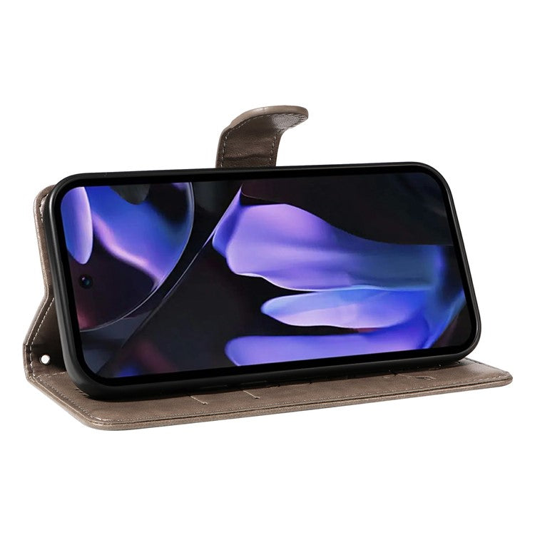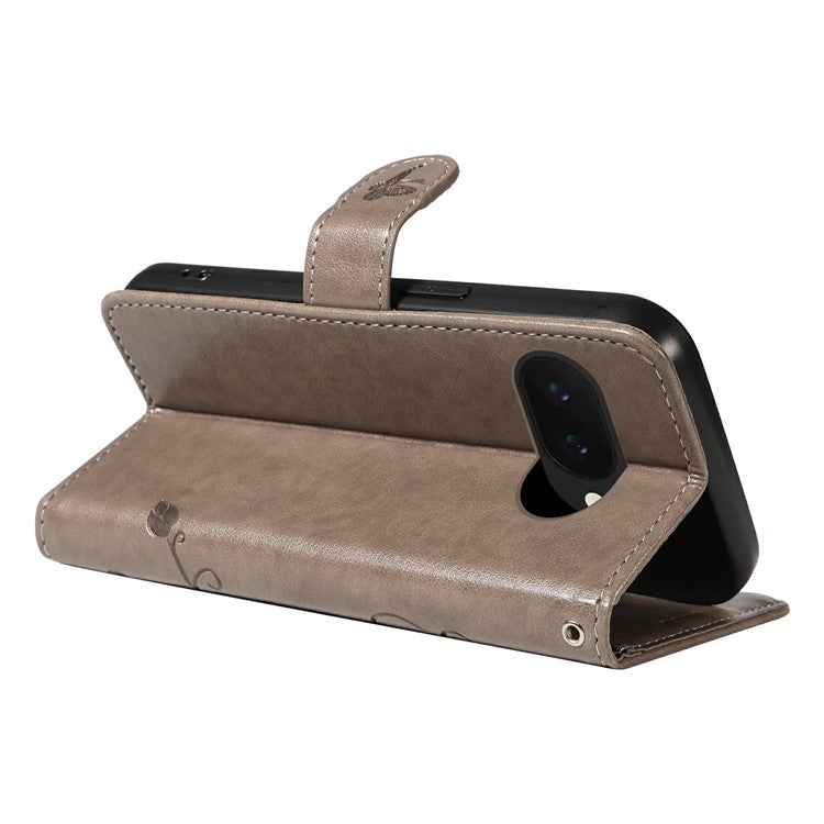 For Google Pixel 9a Case Flower Pattern PU Leather Wallet Phone Cover - Grey