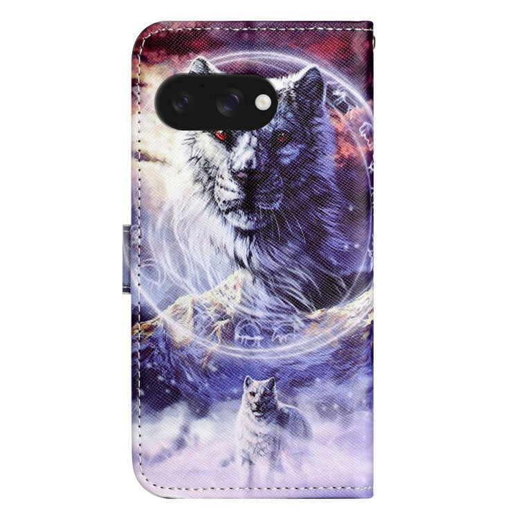 For Google Pixel 9a Case Pattern Print PU Leather Wallet Phone Cover Cross Texture - Snow Wolf