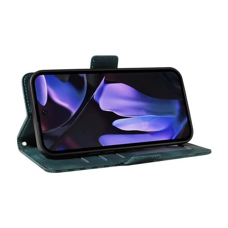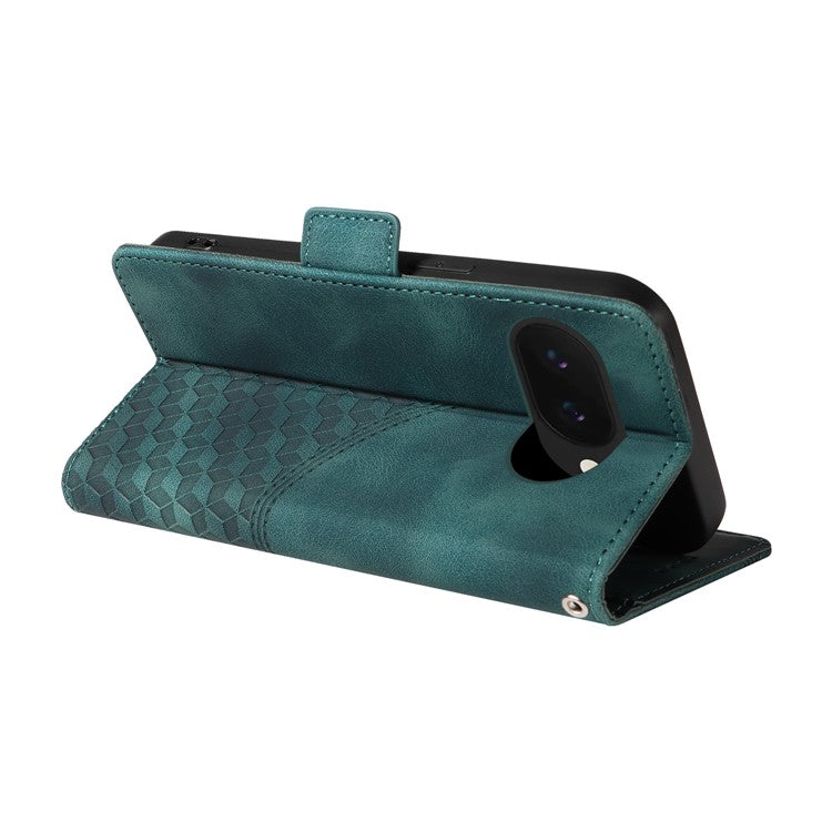 For Google Pixel 9a Case PU Leather Phone Cover Rhombus Starry Imprinted - Green