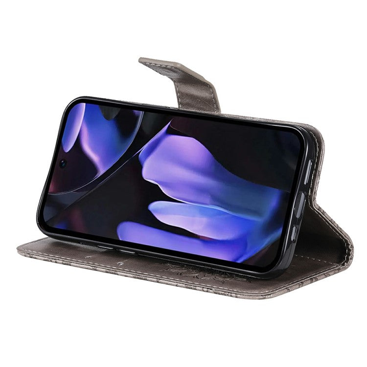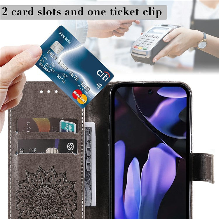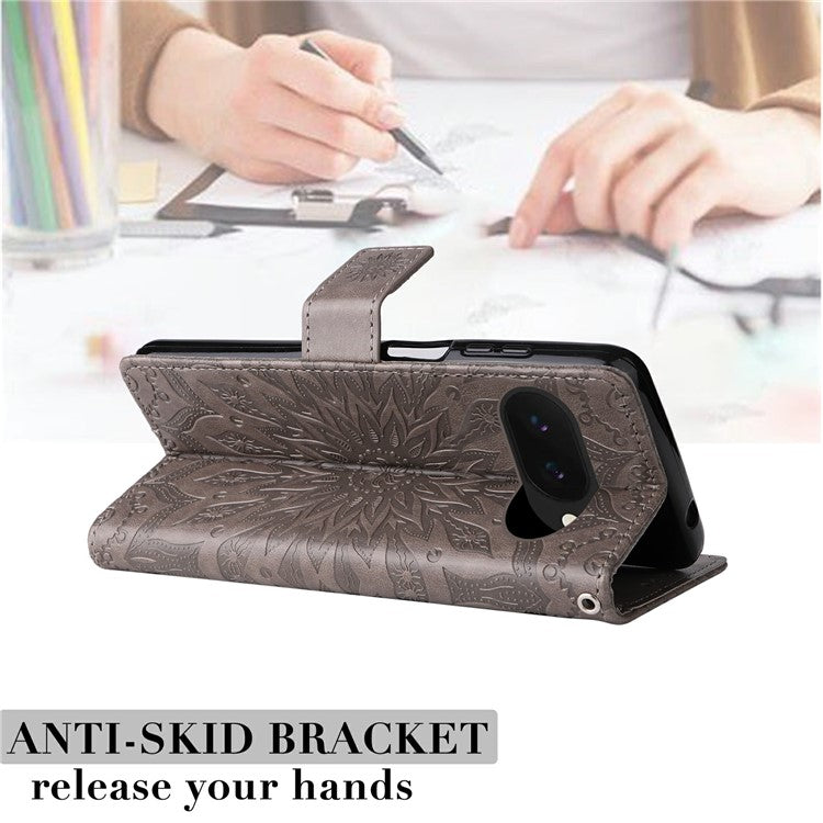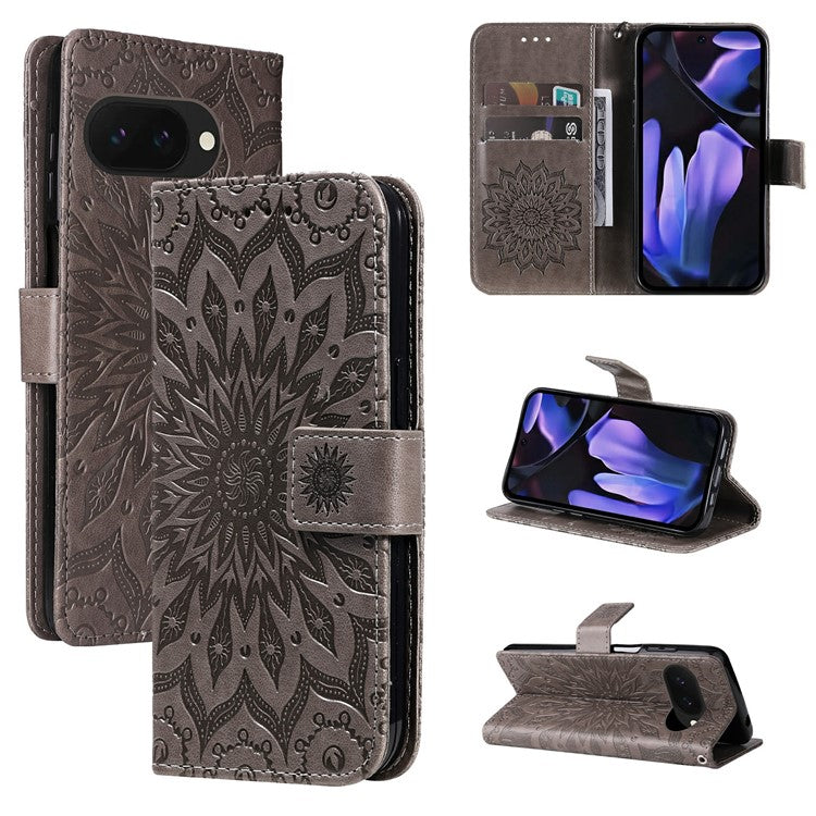 For Google Pixel 9a Case Sunflower Leather Wallet Phone Cover - Grey