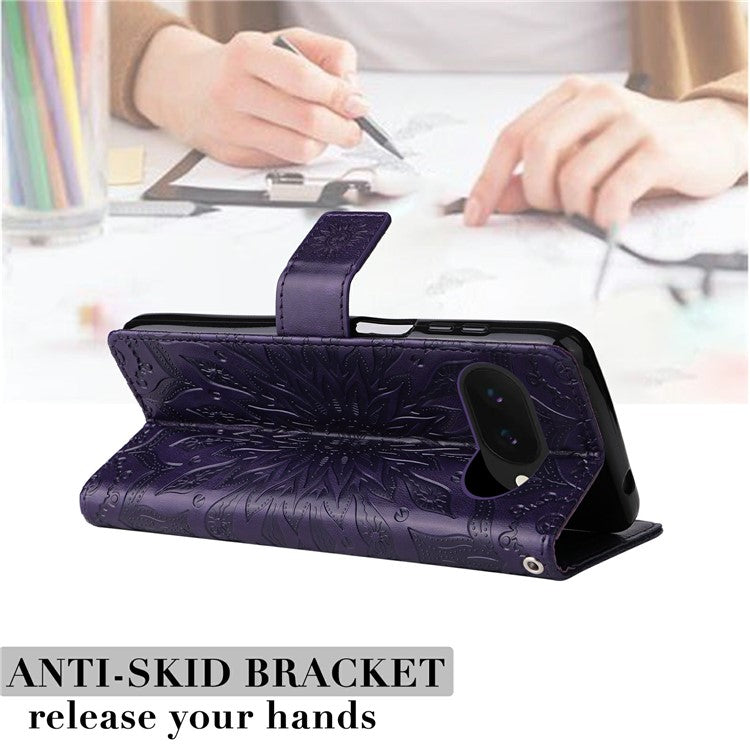 For Google Pixel 9a Case Sunflower Leather Wallet Phone Cover - Purple