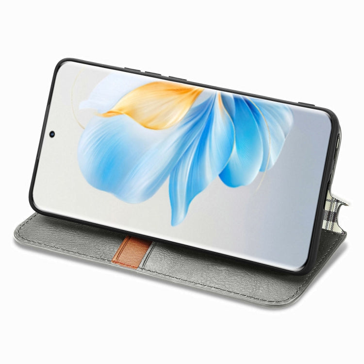 For Honor 100 5G Cubic Grid Pressed Magnetic Leather Phone Case(Grey)
