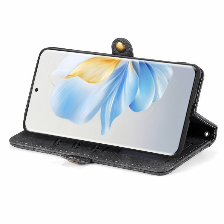 For Honor 100 5G Geometric Zipper Wallet Side Buckle Leather Phone Case(Black)