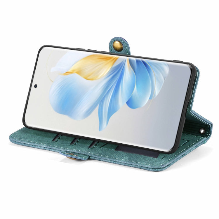 For Honor 100 5G Geometric Zipper Wallet Side Buckle Leather Phone Case(Green)