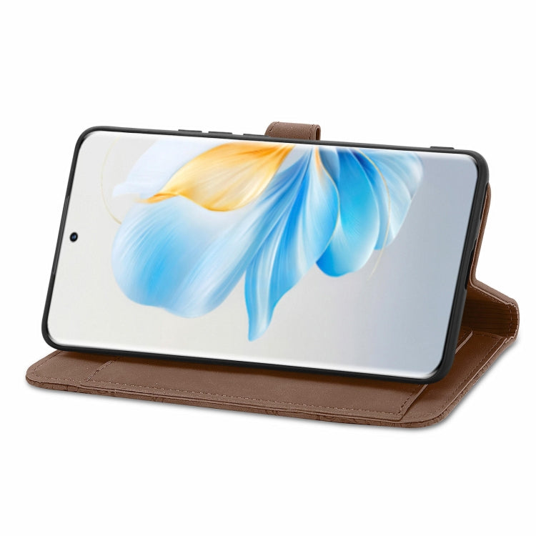For Honor 100 Embossed Flower Zipper Leather Phone Case(Brown)