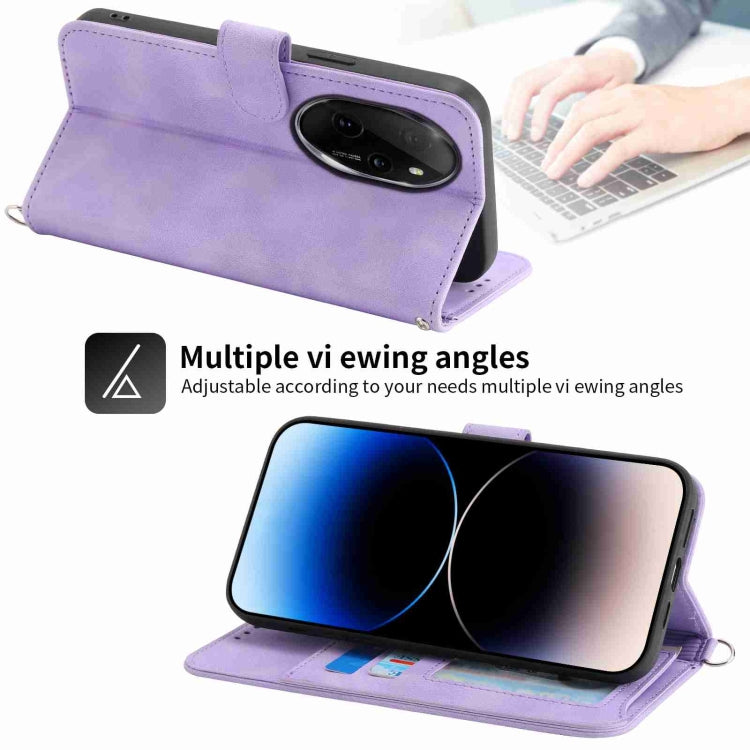 For Honor 100 Pro Skin-feel Flowers Embossed Wallet Leather Phone Case(Purple)