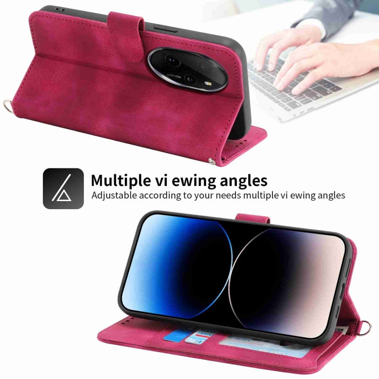 For Honor 100 Pro Skin-feel Flowers Embossed Wallet Leather Phone Case(Wine Red)