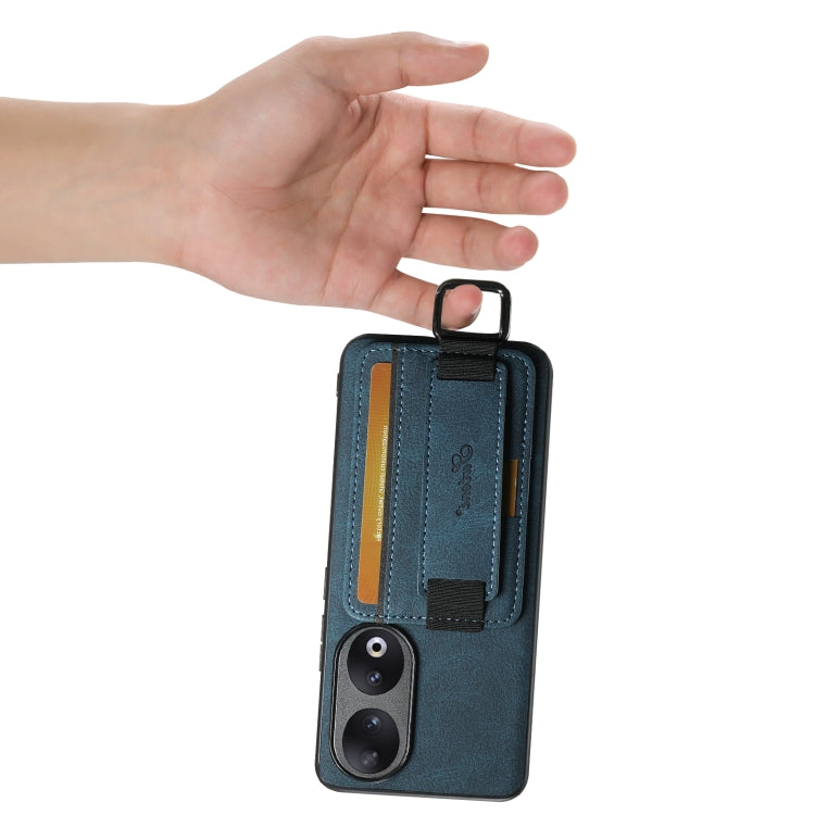 For Honor 60 Suteni H13 Litchi Leather Wrist Strap Wallet Back Phone Case(Blue)