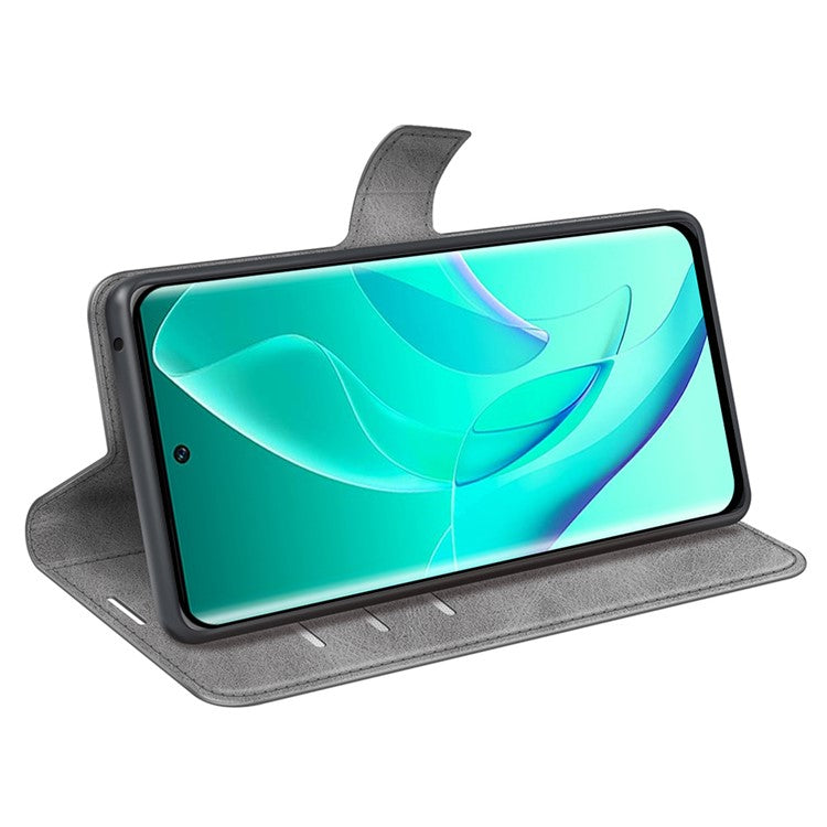 For Honor 60 Textured PU Leather TPU Interior Protective Case Stand Folio Flip Wallet Phone Cover - Grey