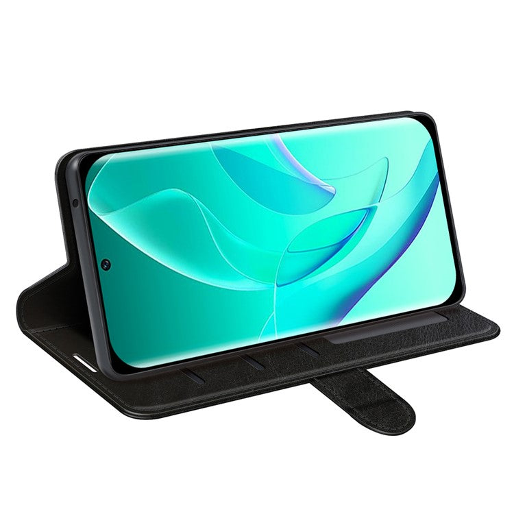 For Honor 60 Wallet Phone Case Magnetic Premium Crazy Horse Texture PU Leather Folio Flip Cover with Folding Stand - Black