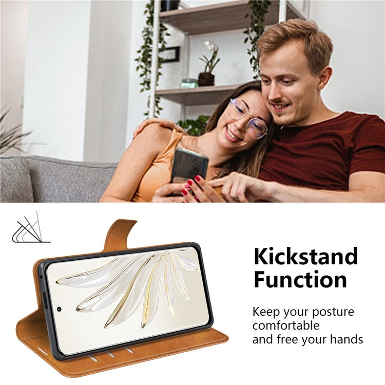 For Honor 70 5G PU Leather Stand Wallet Feature Magnetic Case Square Wear-resistant TPU Flip Book Cover - Yellow