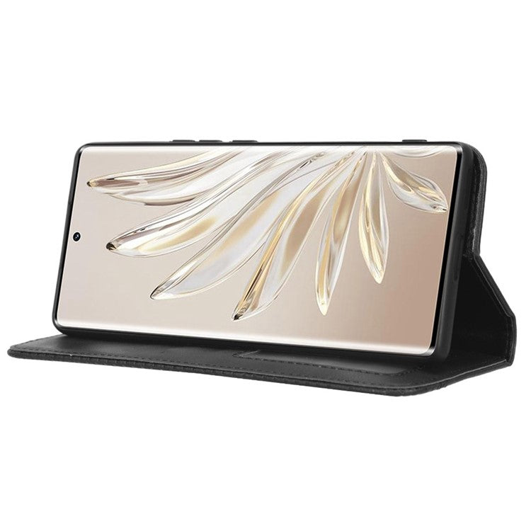 For Honor 70 5G Retro Texture Magnetic Absorption Case Imprinted Mosaic Wallet Stand Cell Phone Cover - Black