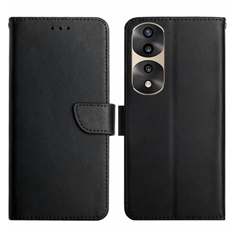 For Honor 70 Pro 5G / 70 Pro+ 5G HT02 Nappa Texture Genuine Leather Phone Case Solid Color Stand Magnetic Flip Folio Wallet Cover - Black