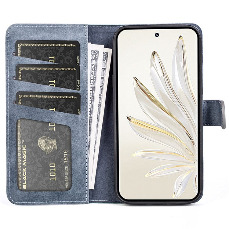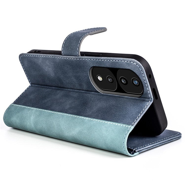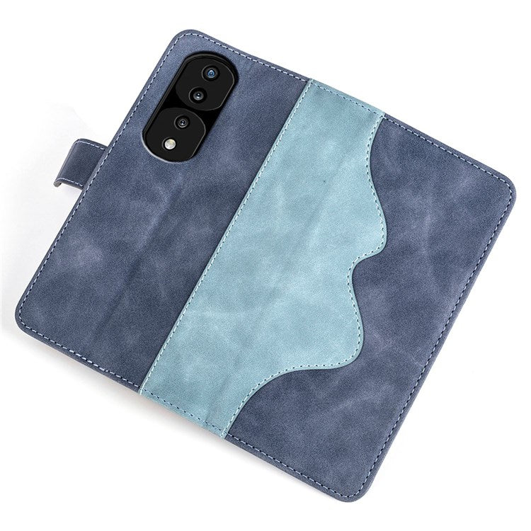 For Honor 70 Pro 5G Color Splicing Wallet Case PU Leather Magnetic Protect Flip Stand Phone Cover - Blue