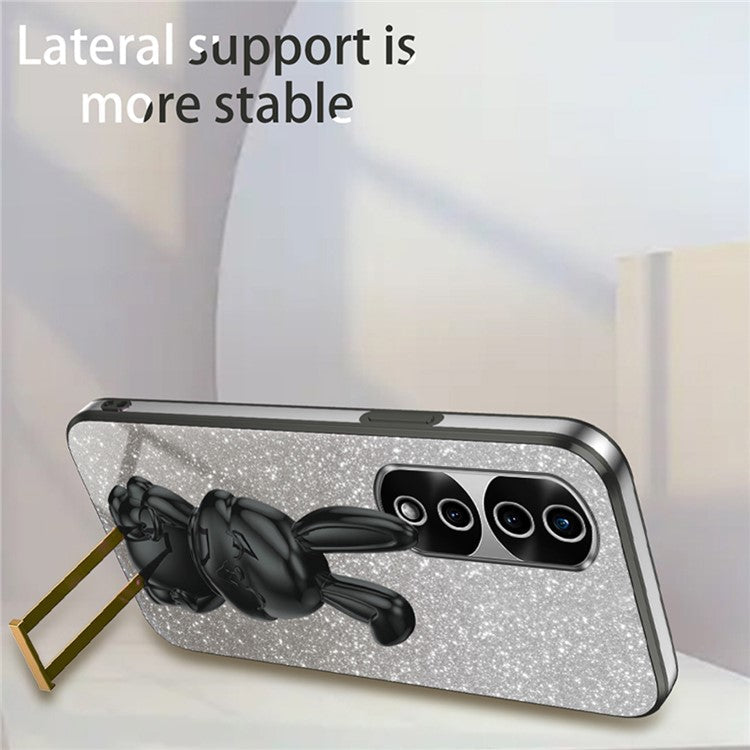 For Honor 70 Pro 5G Phone Case Glitter Powder PC+TPU Phone Cover with Pull-out Kickstand - Black