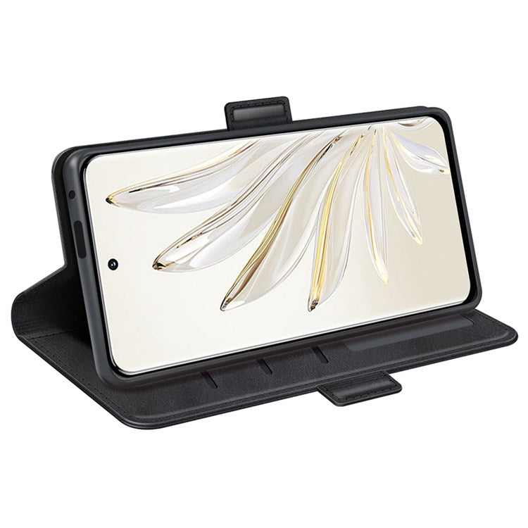 For Honor 70 Pro 5G PU Leather Wallet Stand Case Dual Magnetic Clasp Protect Shockproof Inner TPU Flip Cover - Black