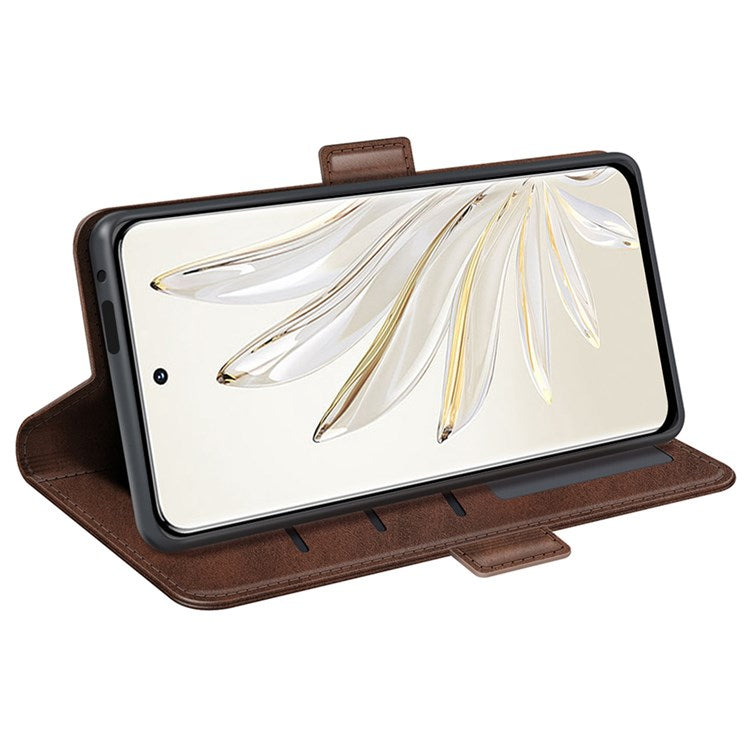 For Honor 70 Pro 5G PU Leather Wallet Stand Case Dual Magnetic Clasp Protect Shockproof Inner TPU Flip Cover - Brown