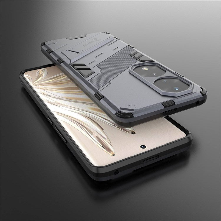 For Honor 70 Pro 5G Shock Absorption Drop-proof TPU+PC Cover Kickstand Anti-scratch Cell Phone Case - Dark Blue